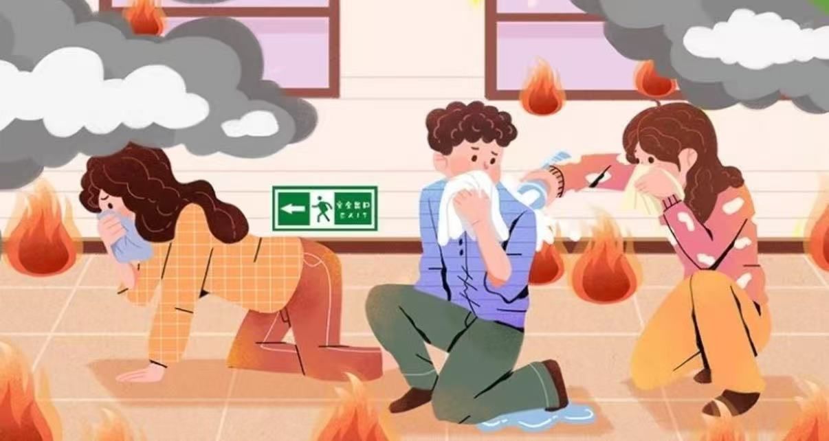 3.安全疏散逃生。建筑发生火灾时,应保持低姿迅速从疏散楼梯逃生,有条件的用湿毛巾捂住口鼻,不乘坐电梯,不盲目跳楼。若楼梯、楼道被烟火封住,应退回房间,关上门窗,报警等待救援。