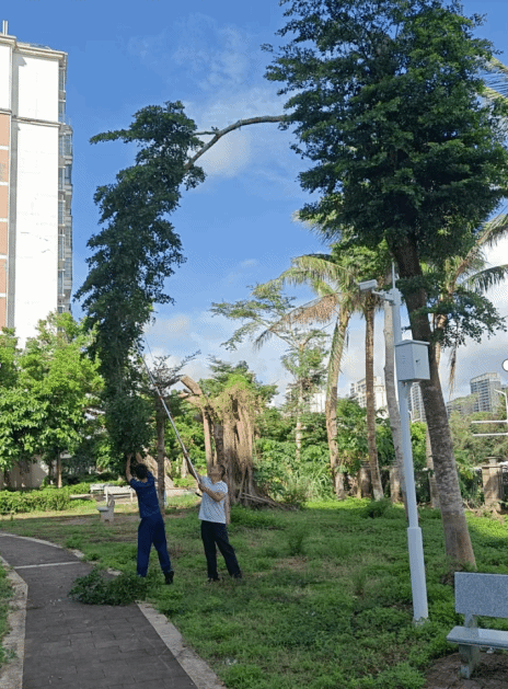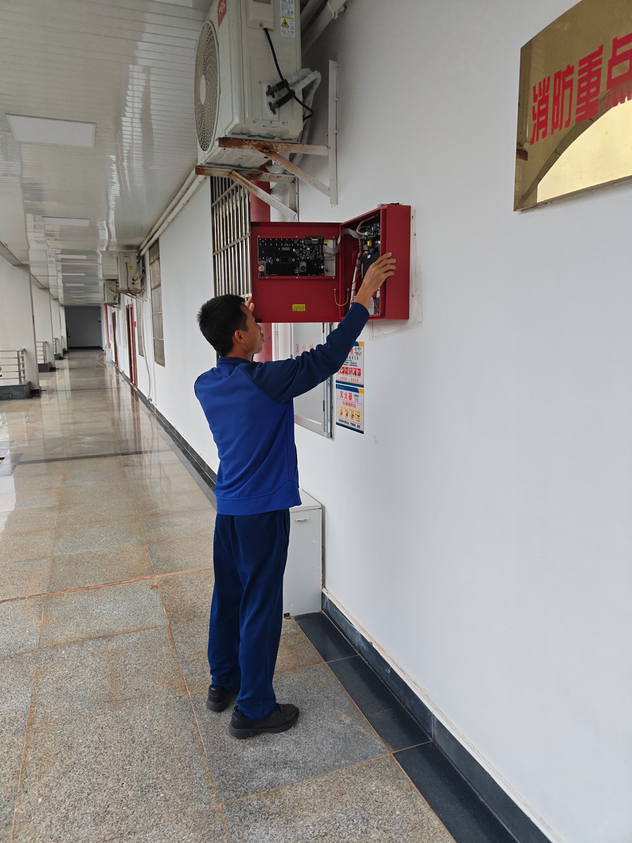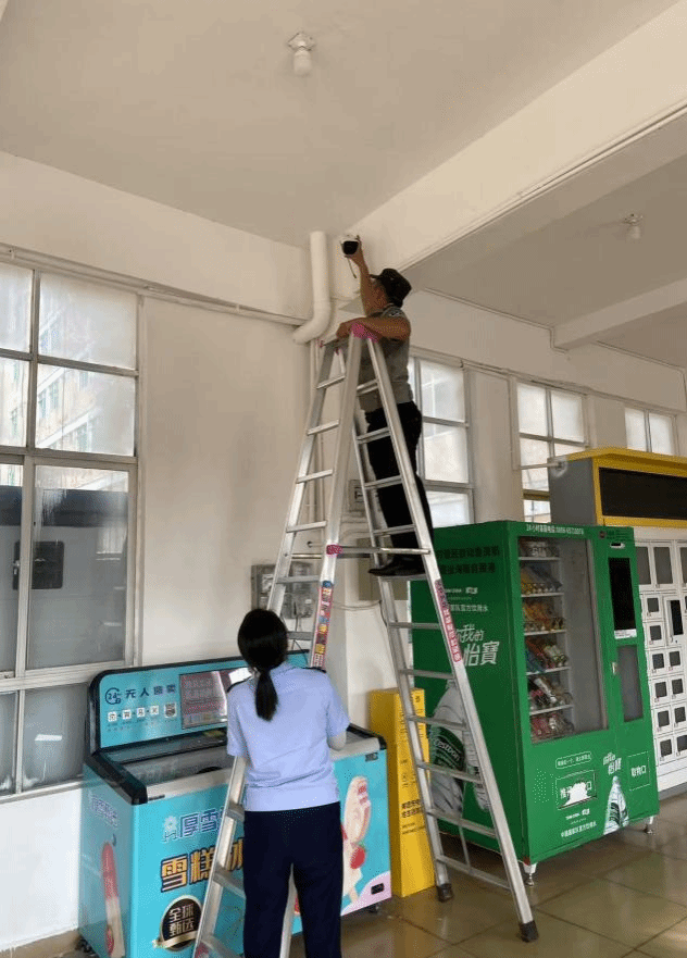 为保障师生人身财产安全,我处开展不定期安防设施设备维护工作,重点对校园监控摄像头倾斜调整、绿化植遮挡清理以及消防设施巡检。