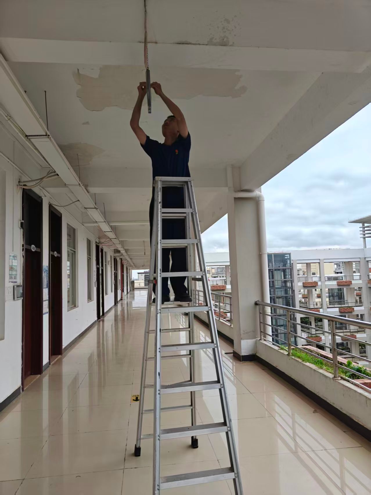 2.消防设备:主要针对水泵房、教学楼设施设备巡查维护,对出现故障设施设备进行维修更换,此次共更换消防应急灯、疏散指示灯共18处。